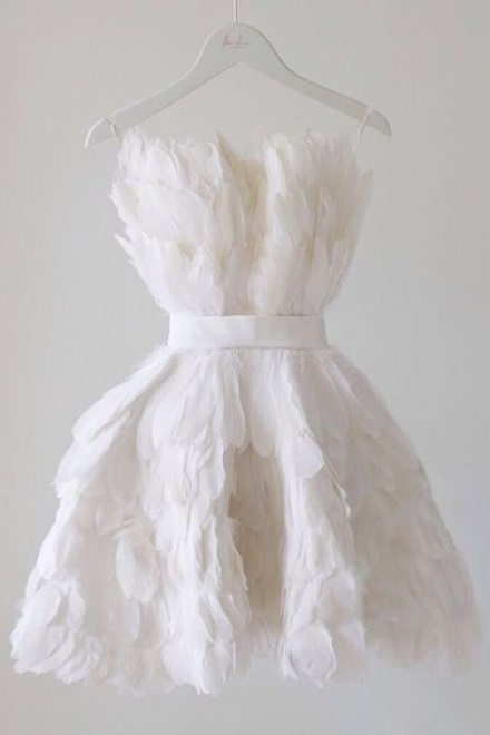 WHITE FEATHER SHORT PROM DRESS, GRADUATION HOMECOMING DRESSES