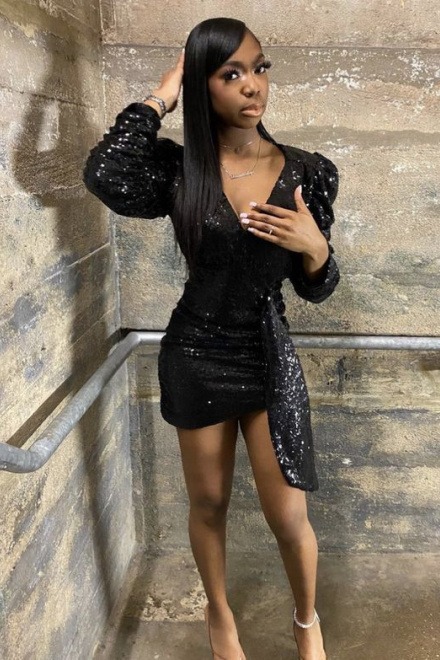 Black V Neck Sequins Short Party Dress 16th Birthday Homecoming Dress