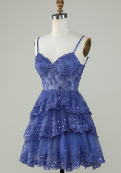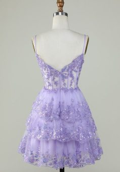 Straps Lavender Sequins Corset Layered Homecoming Dress