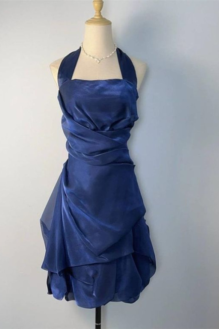 Blue Short Halter Homecoming Dress Party Dress, Blue Short Formal Dress