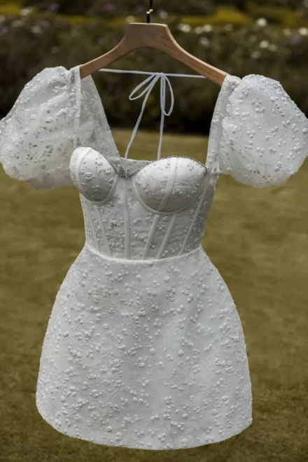 White Homecoming Dress, Princess Strapless Short Prom Dress Short Wedding Dress