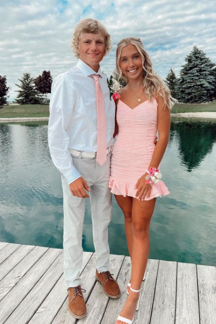 Pink Cute Teen Homecoming Dress Straps Formal Dresses