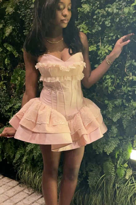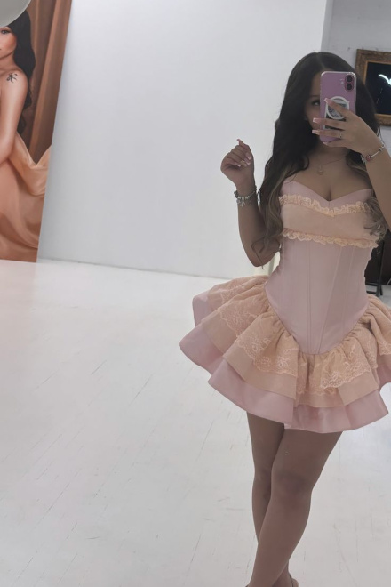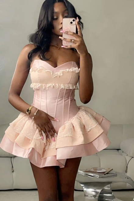 Pink Strapless Birthday Dress Pink Homecoming Dress Short Party Dress