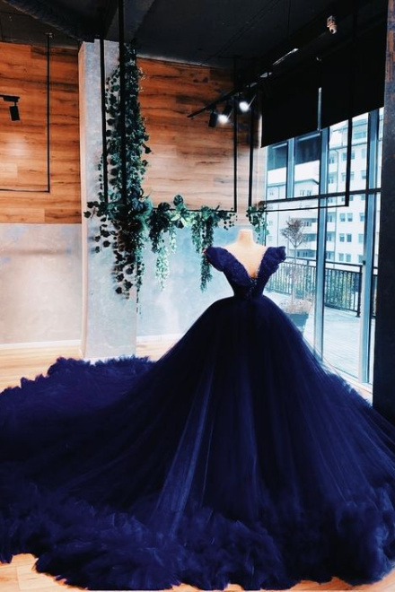 Navy blue long ball gown prom dress