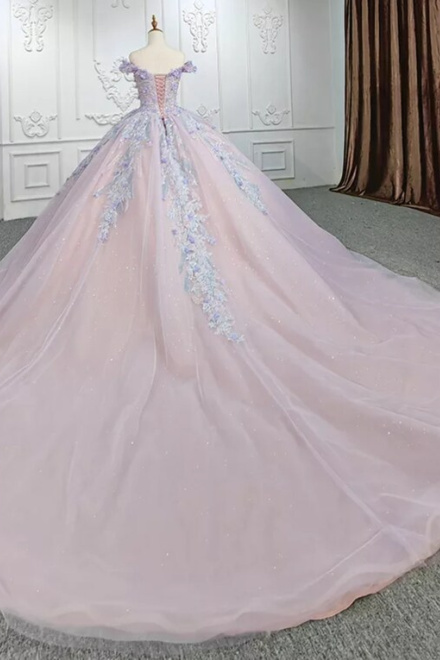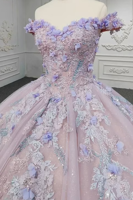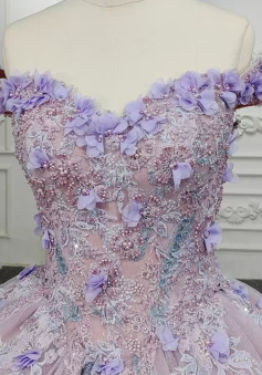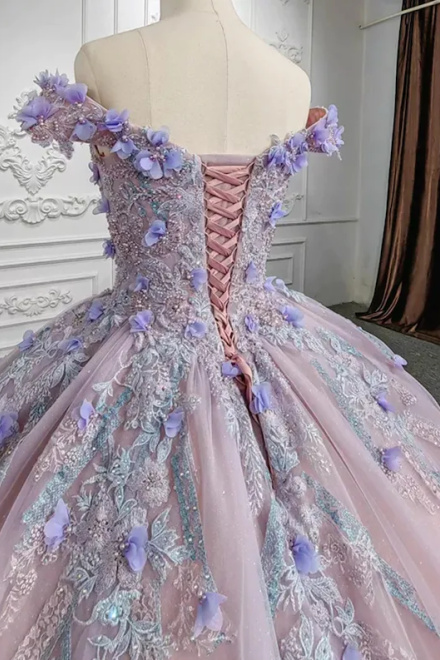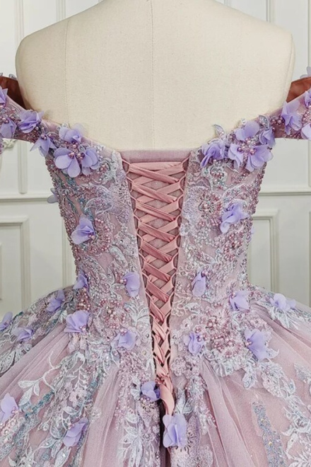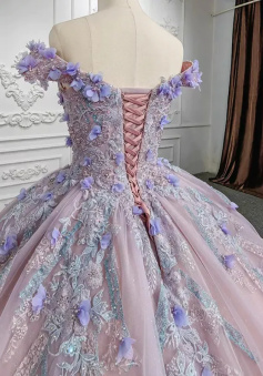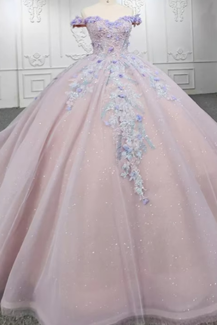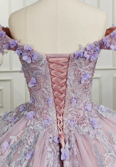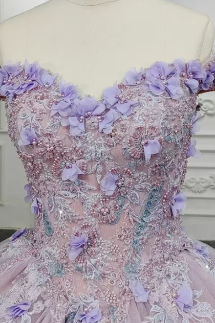 Sweetheart Off The Shoulder Beaded Floral Appliqué Quinceañera Ball Gown