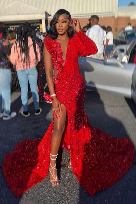 2023 Mermaid Long Red Prom Dresses Party Dress