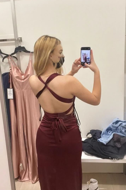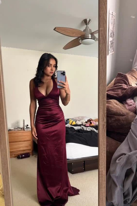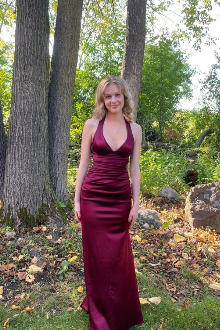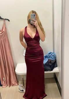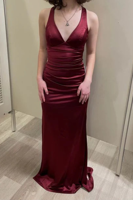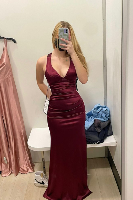 Simple Burgundy V Neck Long Party Dress Formal Prom Dress
