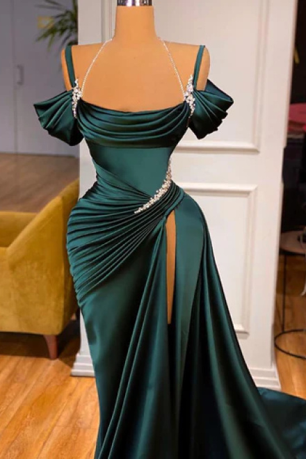 STUNNING OFF-THE-SHOULDER MERMAID PROM DRESS RUFFLES WITH HIGH SPLIT