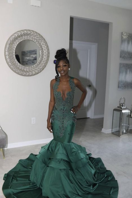 Stunning and Elegant Princess Party Wear Gown Green Prom Dresses