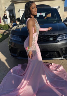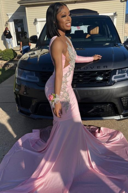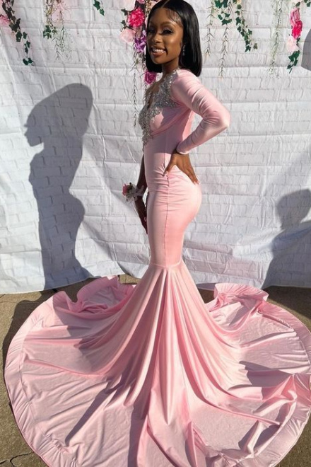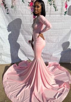 Pink Unique Long Prom Dress Mermaid Party Dress