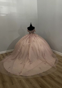 Unique Sleeveless Light Pink Ball Gown Prom Evening Formal Dress