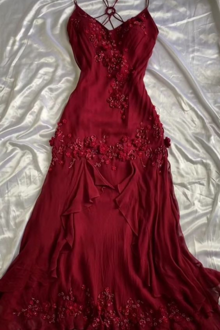 Vintage Sheath Spaghetti Straps Burgundy Long Prom Dress Evening Dresses With Beads