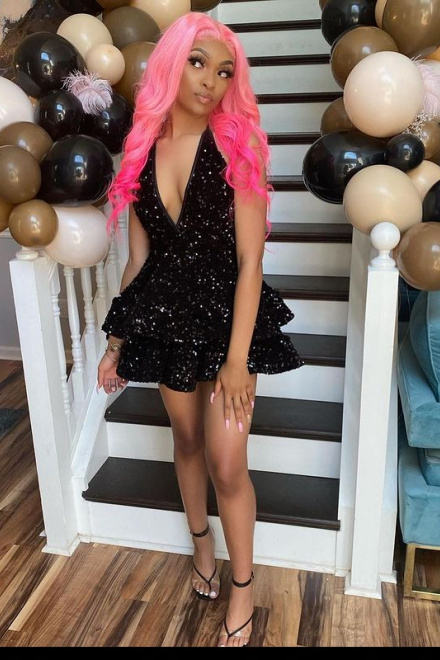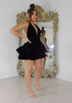 Sexy Black Sparking Short Cocktail Dresses Back Open Tiered Sequin Graduation Gown Parties Night