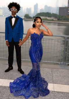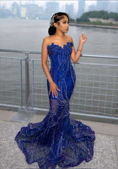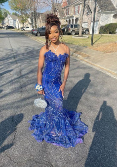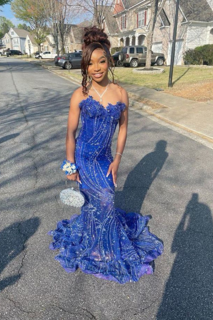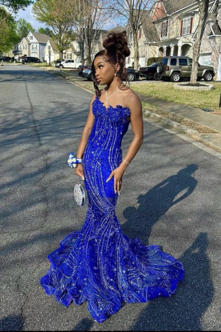 Women's Mermaid Prom Dress, Sweetheart Sequin Royal Blue Birthday Party Dress