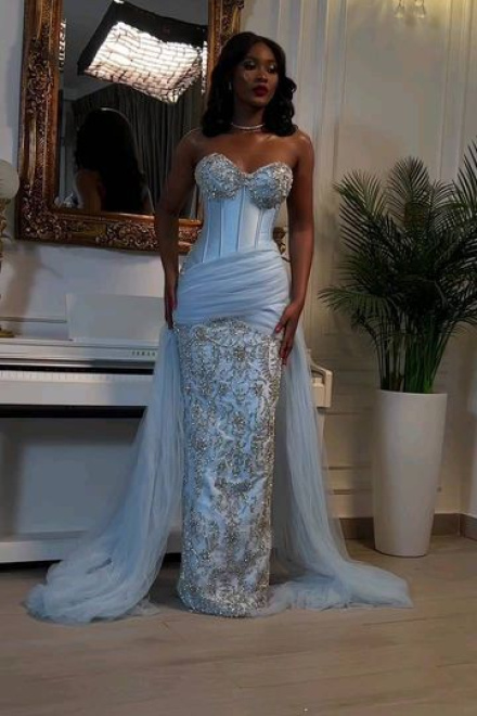 Blue Memraid Strapless Evening Dress Long Formal Gown