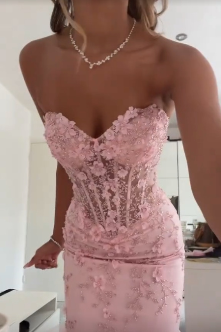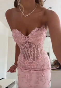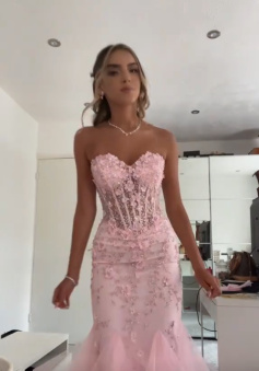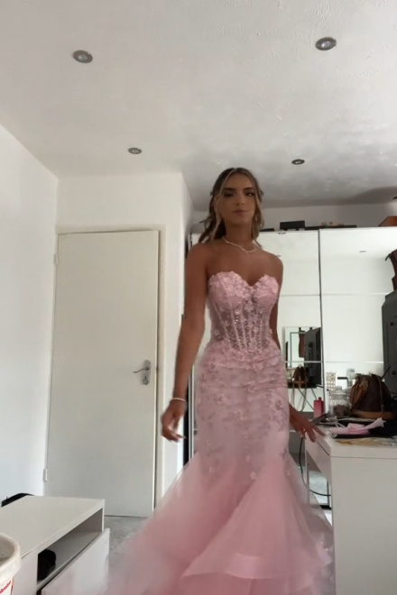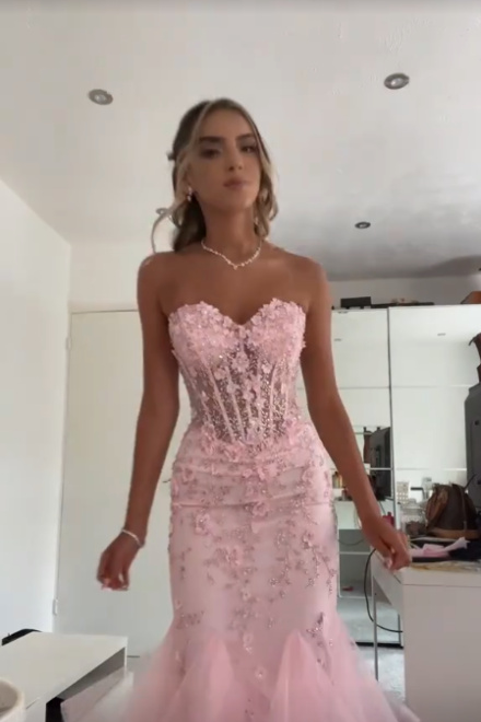 Mermaid Pink Tulle Long Prom Dress, Evening Formal Dress