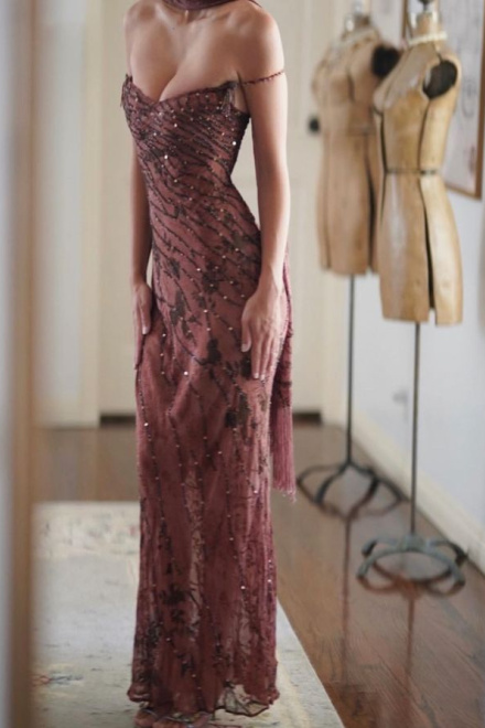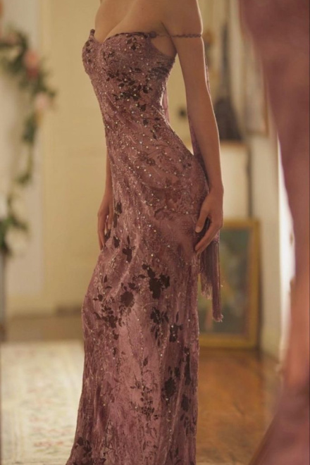 Vintage Prom Dress, Elegant Off Shoulder Evening Dress