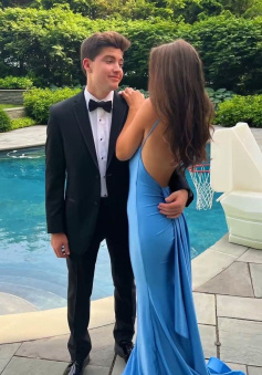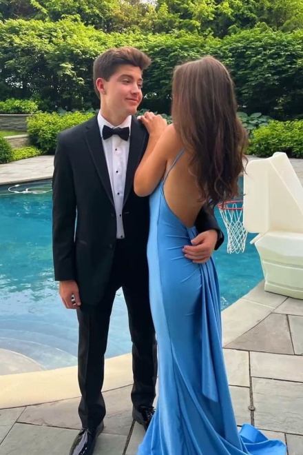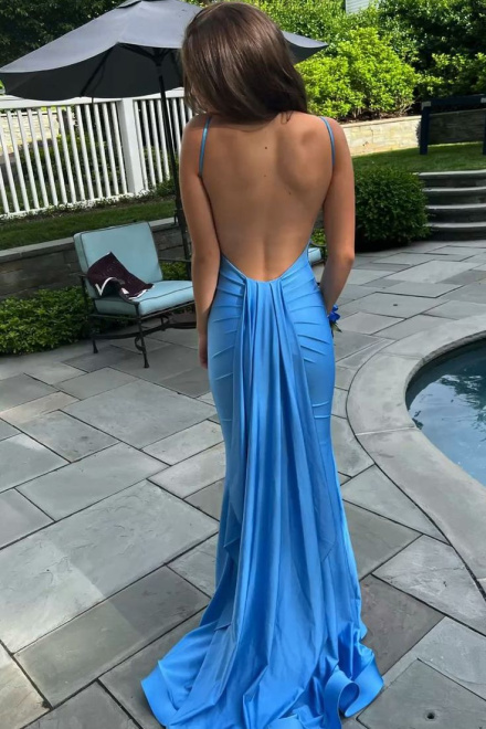Sexy Blue Mermaid Prom Dresses,Open Back Long Evening Party Dress