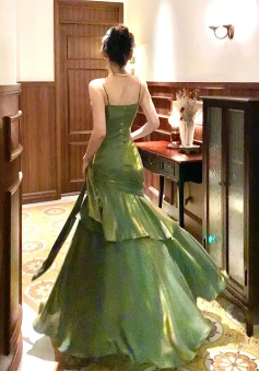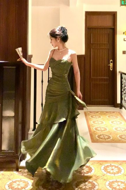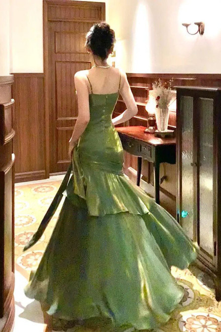 Chic Green Straps Sweetheart Long Formal Dress, Green Prom Dress Evening Dress