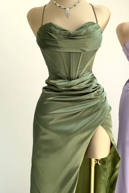 Green Spaghetti Straps Popular Mermaid Evening Formal Long Prom Dresses