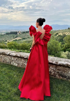 Red long formal prom dress, long evening party Gown