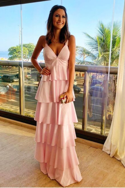 Gorgeous V Neck Pink Long Prom Dress, Formal Evening Dress