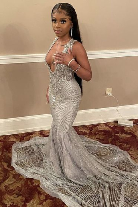 Silver Mermaid Women Formal Evening Party Prom Gowns