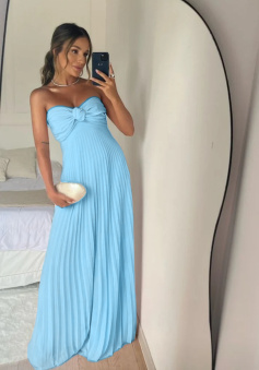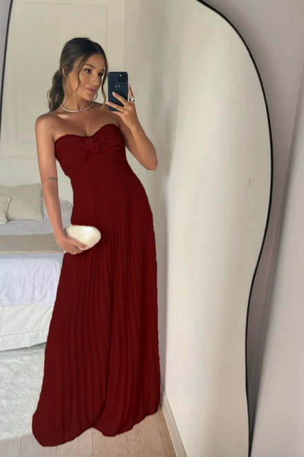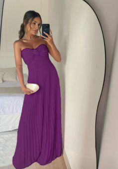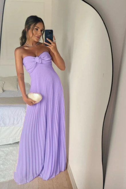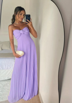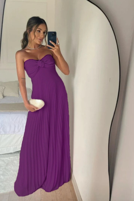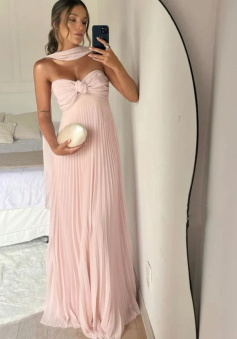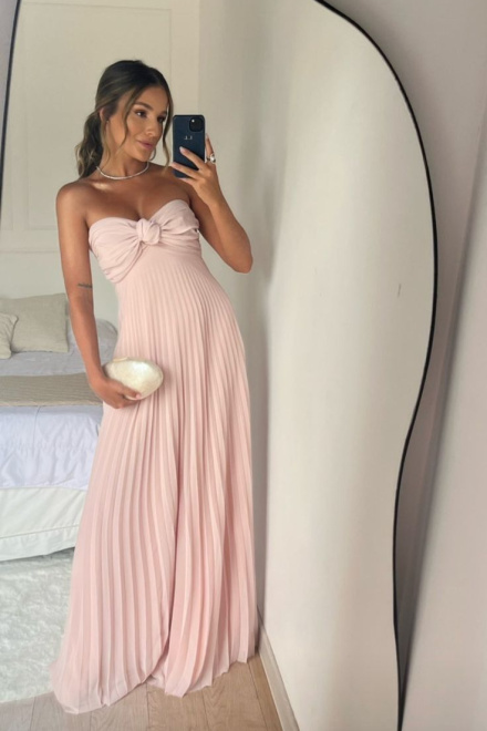 Strapless A Line Pink Long Prom Dress Pleated Formal Party Gown