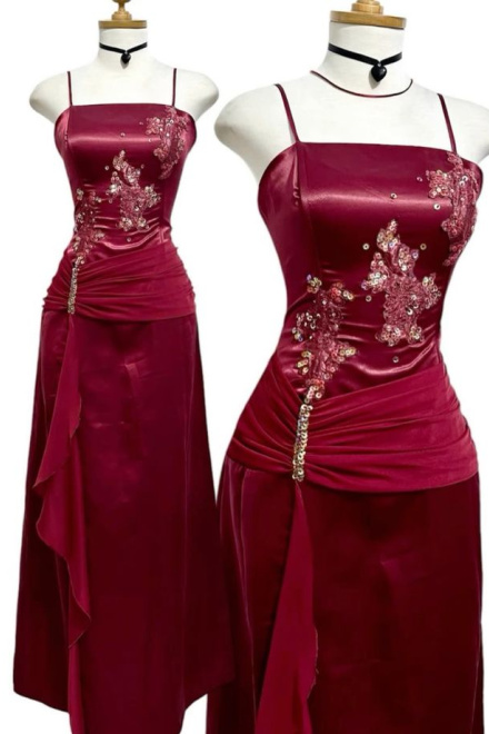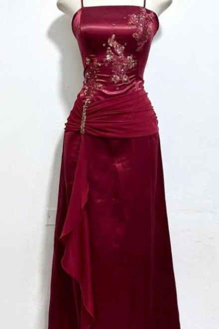 Burgundy Prom Party Dress Long Formal Evening Dress
