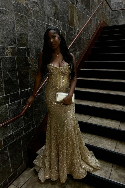 Gold Sequin Mermaid Long Prom Gown Evening Dress