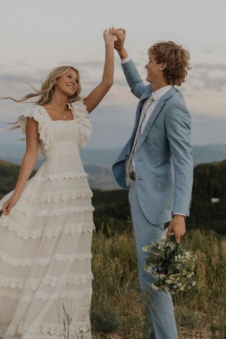 A Line Wedding Dress Long Square Neck Bridal Dresses