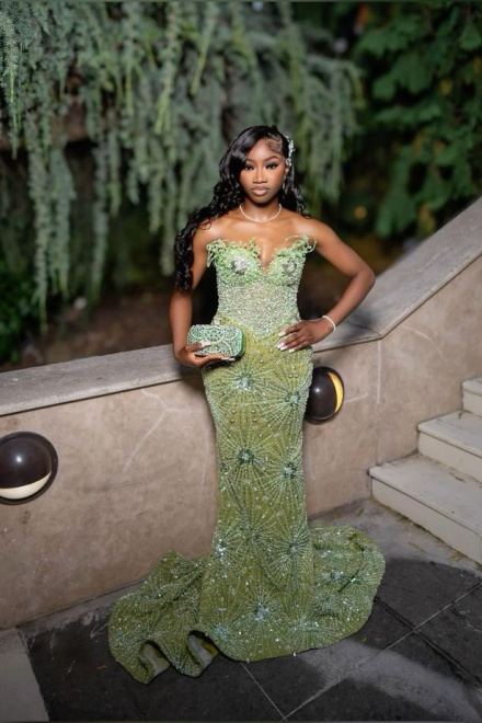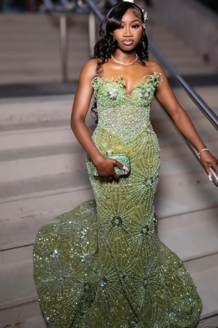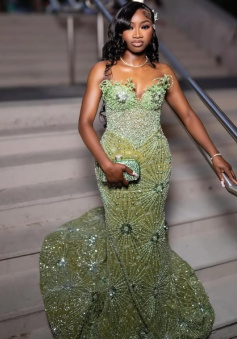 Green Mermaid Long Evening Gown Shinny Prom Dress