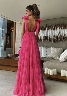 Pink Backless Prom Dress, Evening Dress