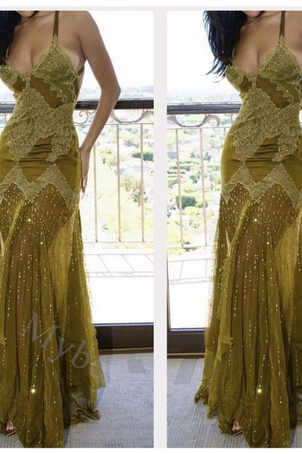 Elegant Green Straps Sleeveless Mermaid Prom Dresses