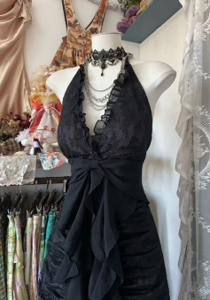Black Halter V Neck Long Prom Dress,Long Evening Gowns