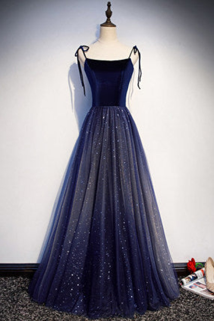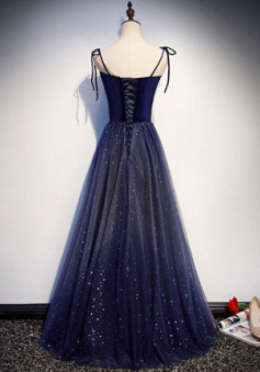 Simple A line Prom Dresses Navy Blue Tulle Evening Dress Bridesmaid dress