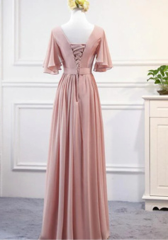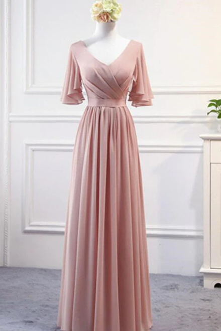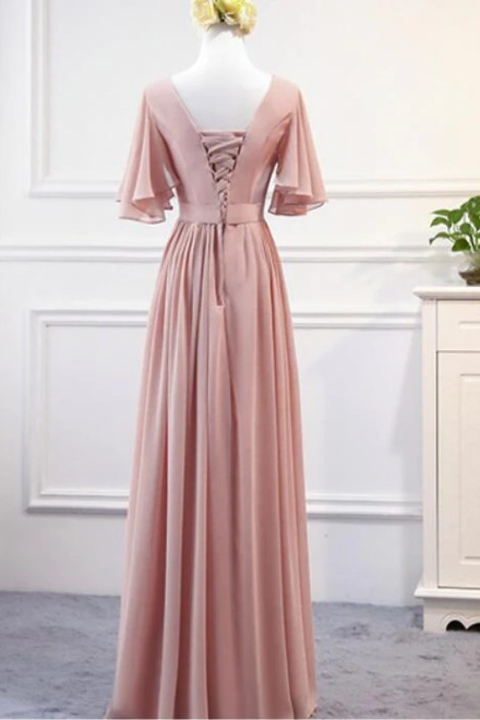 Pink Chiffon Bridesmaid Dresses ,Long Formal Gowns, Pink Party Dresses