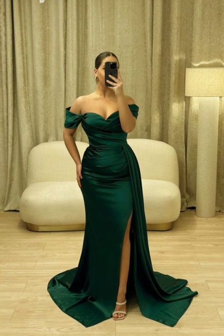 Long Mermaid Dark Green Satin Bridesmaid Dresses