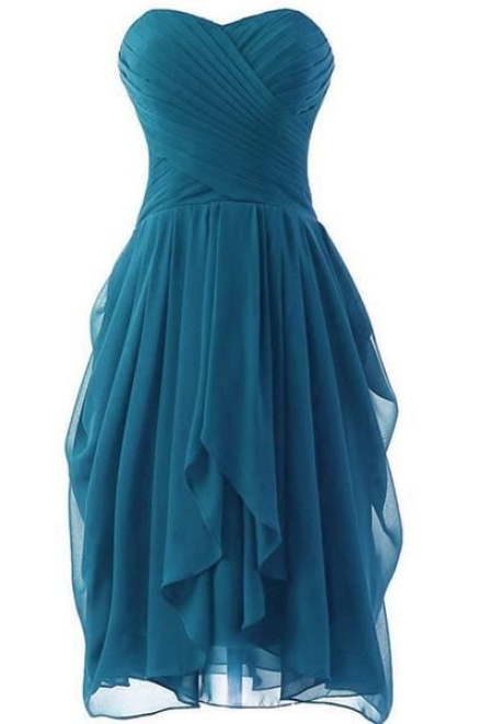 Beautiful Teal Color Short Bridesmaid Dress, Chiffon Sweetheart Short Party Dress