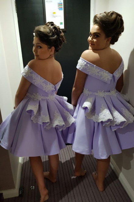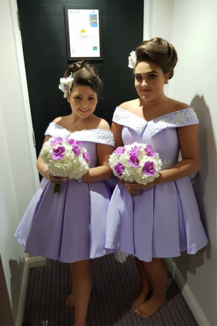 Lavender Bridesmaid Dresses Knee Length Wedding Party Gowns Plus Size Custom Made