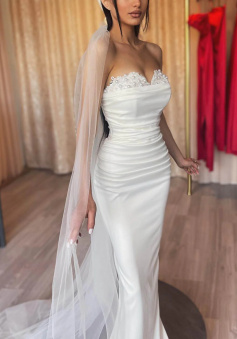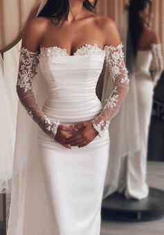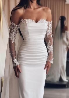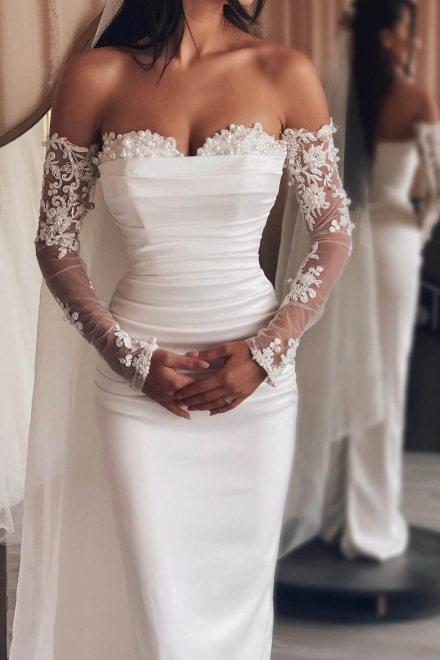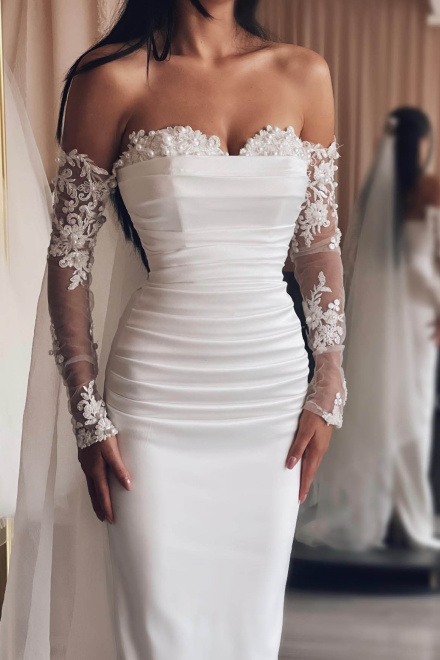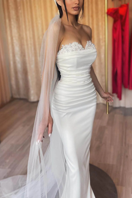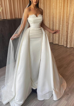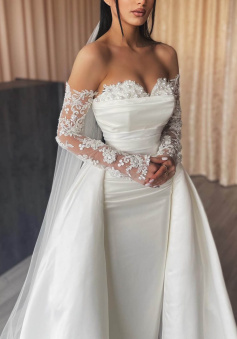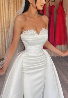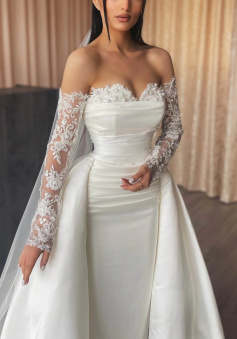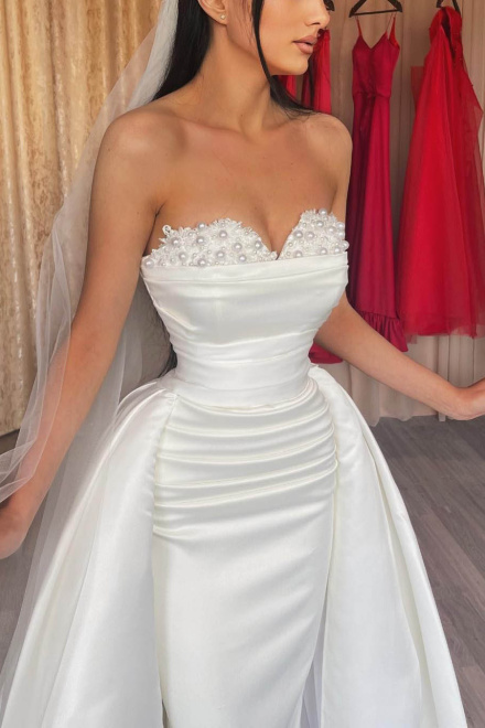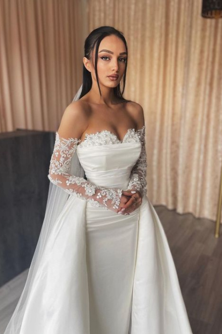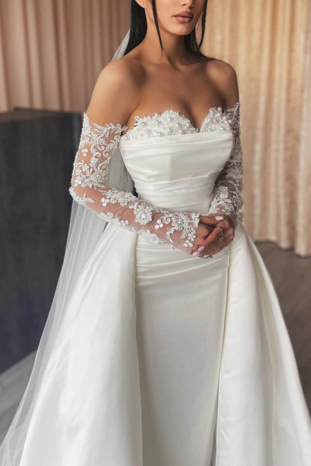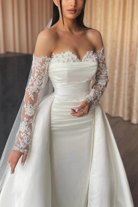 Mermaid Wedding Dresses With Detachable Skirt Sweetheart Long Sleeves Beaded With Pearls Wedding Dress