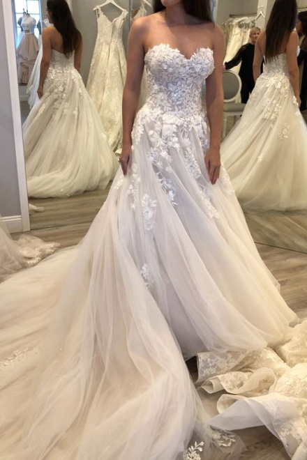A Line Strapless Party Prom Gown for Women, Wedding Dress