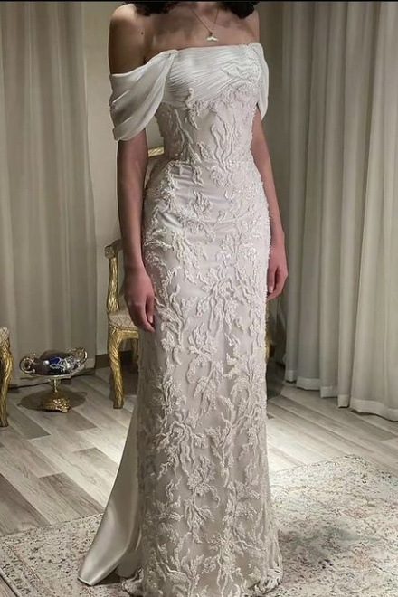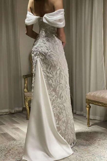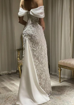 Gorgeous Off Shoulder Appliques Long Prom Dress Wedding Dress