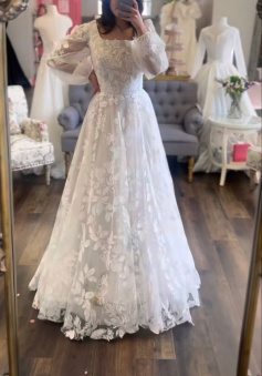 Modest Wedding Dress Long Sleeve Lace Applique Classic A-Line Wedding Dress