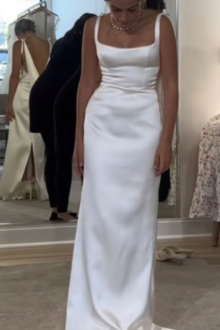 Sheath/Column Straps Floor-Length Wedding Dresses
