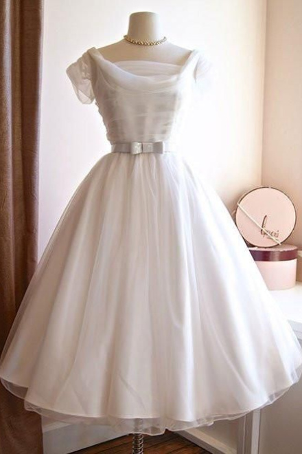 Round-Neck White Tulle Short Retro Prom Dresses, Retro Wedding Dresses