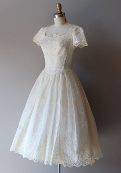 Vintage A-Line Short Lace Tea Length Wedding Dress Chic Midi Bridal Gown with Sleeve