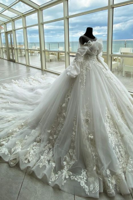Luxurious White Wedding Dress With Trail,White Bridal Dress