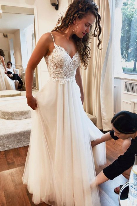 A-line Unique Lace Tulle Vintage Long Wedding Dresses