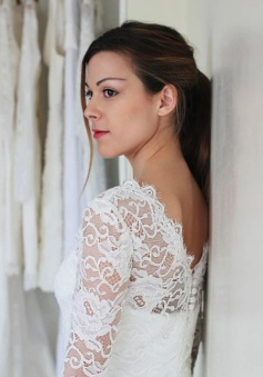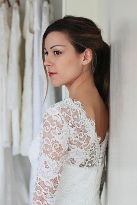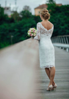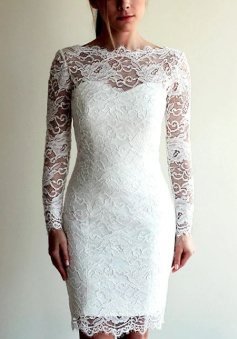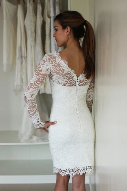 Long Sleeve Lace Short Fitted Wedding Dress